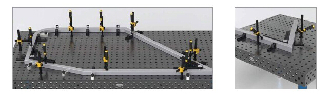 角度器用于高度定位或平臺(tái)拓展及其它附件的定位或壓緊,是為了_工件在加工過程中達(dá)到_高度要求,而將支撐件定位在平臺(tái)上的元件。 角度器可連續(xù)調(diào)節(jié)0°~180°之間的任意角度,從側(cè)面圓盤刻度上讀數(shù),當(dāng)調(diào)節(jié)到所需要的角度時(shí),擰緊側(cè)面的夾緊螺絲即可。兩夾角臂上分別有系統(tǒng)孔和槽,可以在孔和槽中連接其他定位夾具模塊用于定位或夾緊。